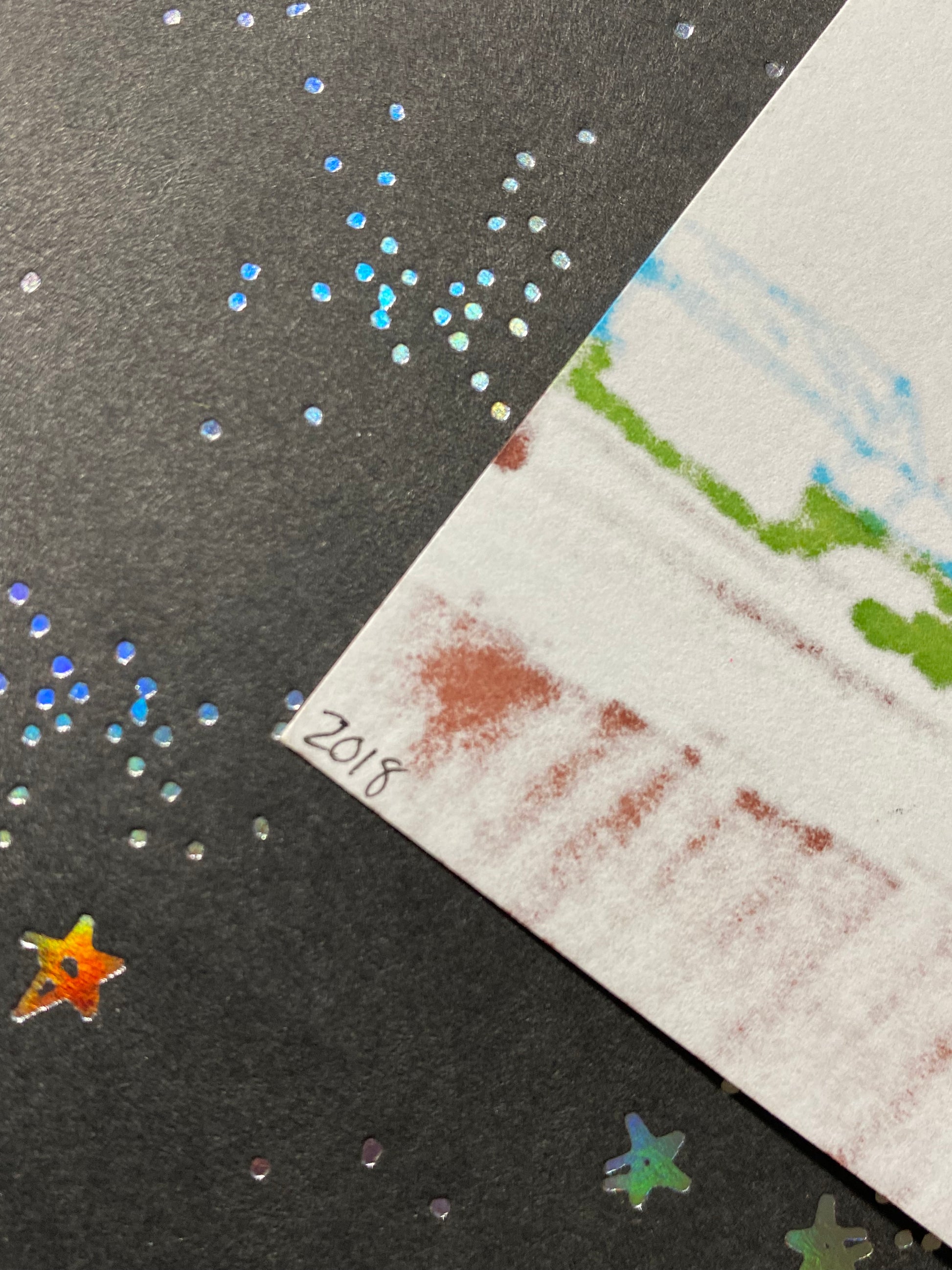 Drawn on 4”x6” card stock, drawn with black micron ink pens, alcohol markers and white gel pen.