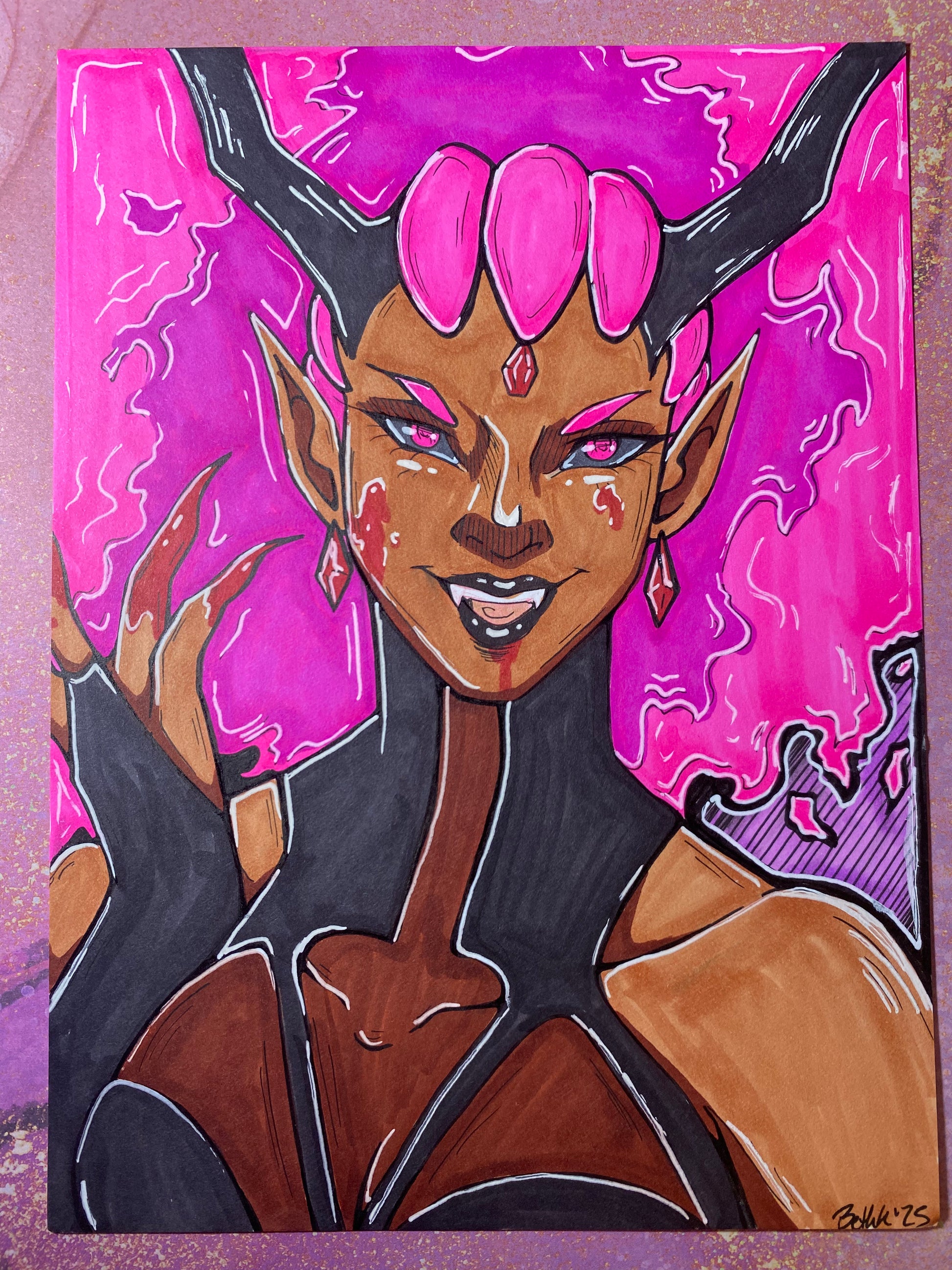 All pieces measure roughly 5”x7”, drawn on card stock with Faber Castell ink pens, alcohol markers, and white gel pen.