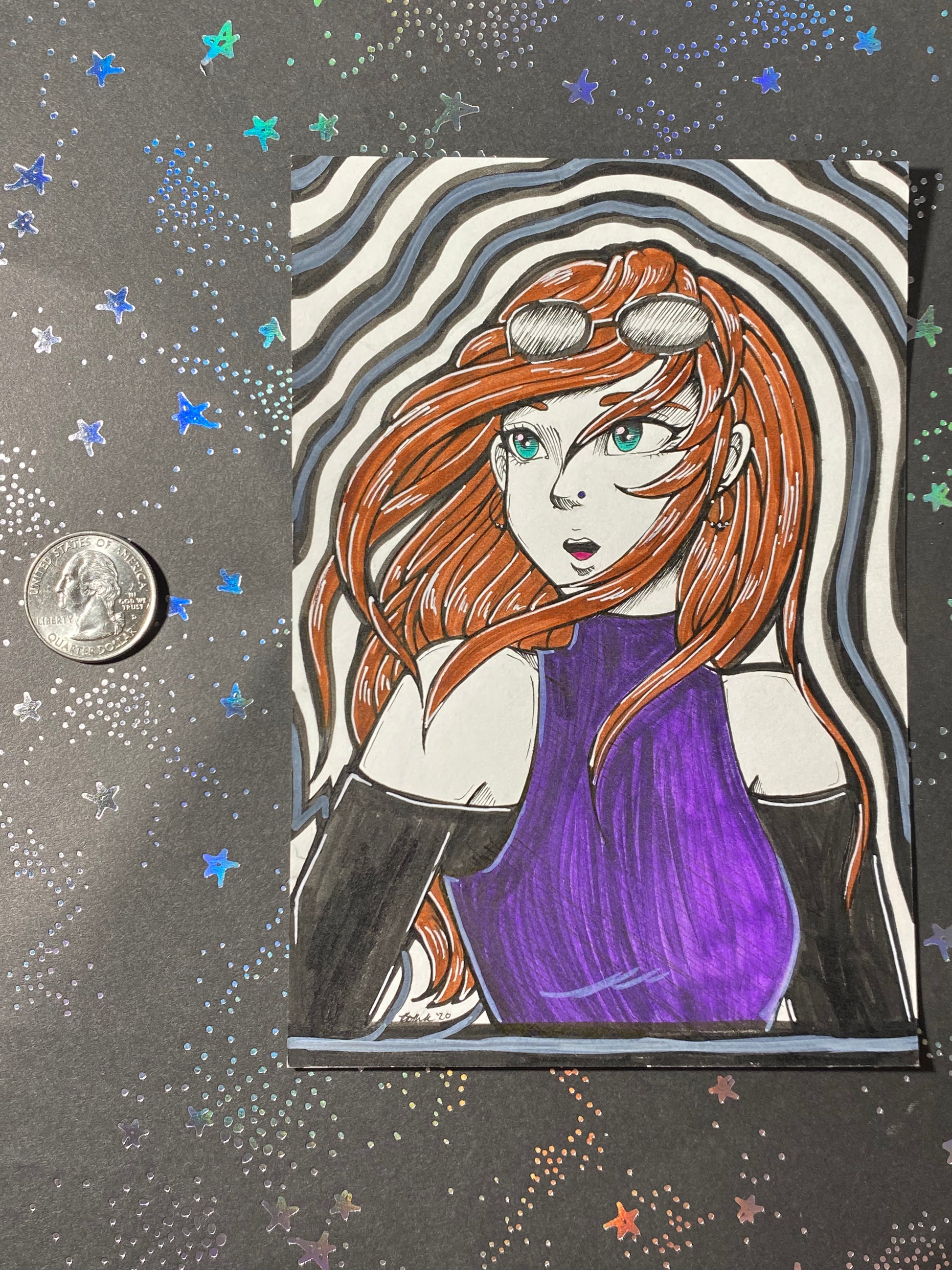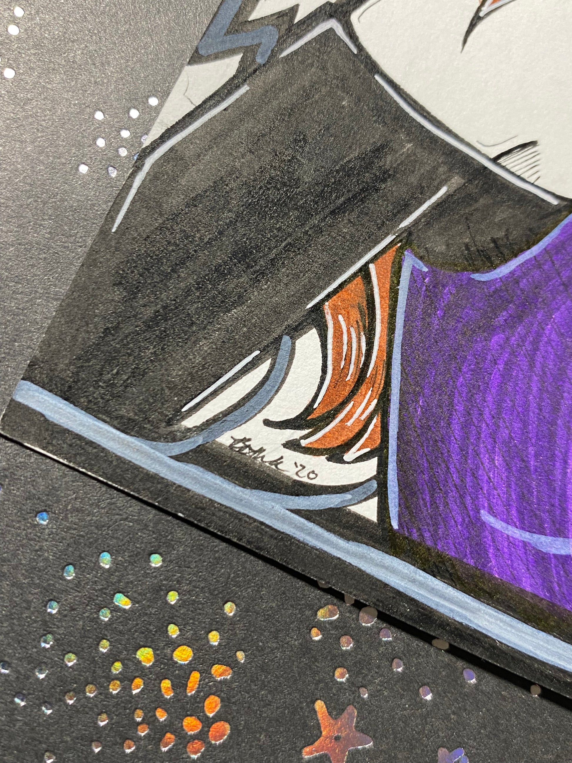 Drawn on 4”x6” card stock with micron/Faber Castell ink pens, white gel pen and alcohol markers.