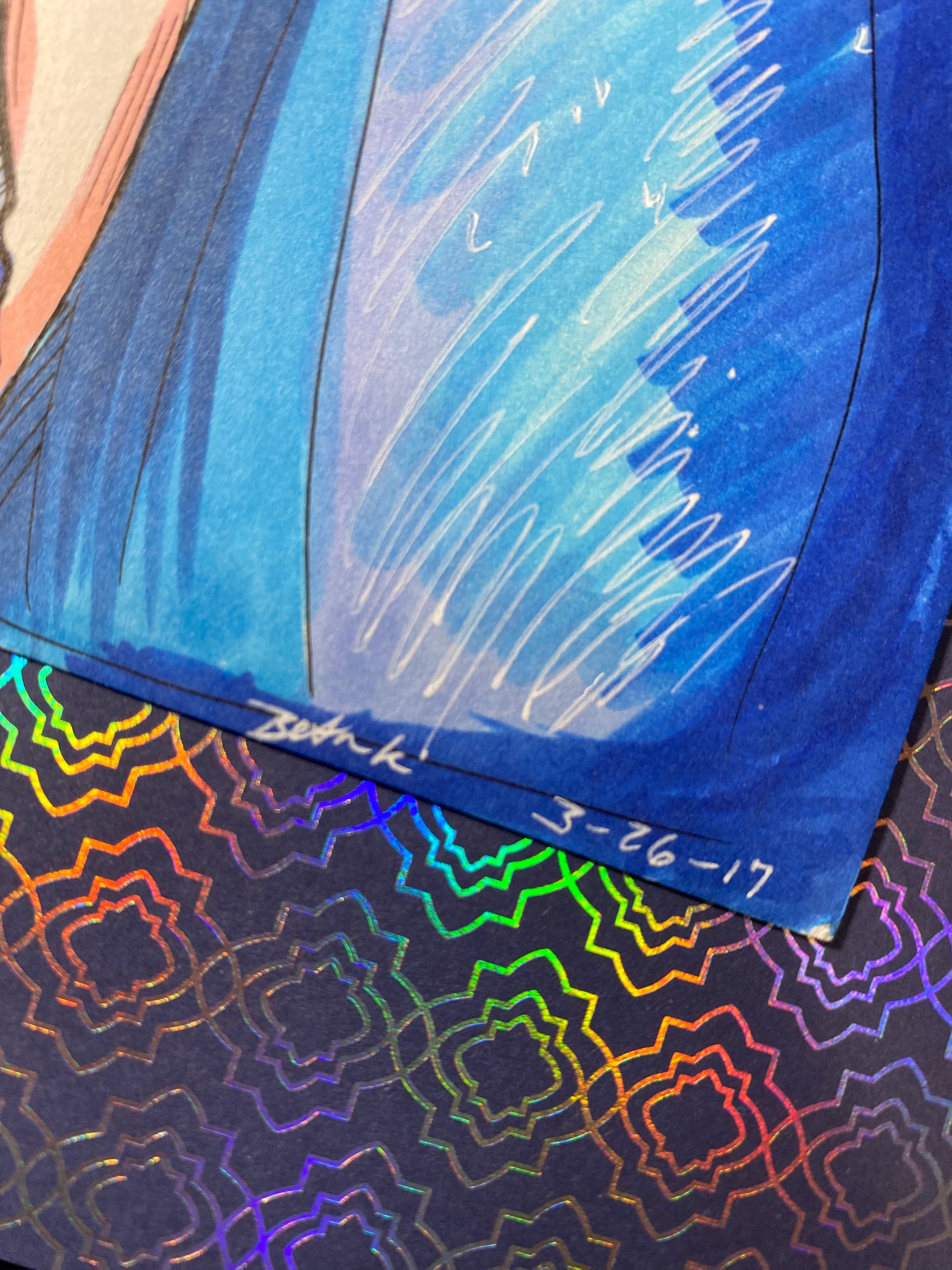 Artwork is drawn on 9”x12” bristol paper, drawn with micron ink pen, white gel pen and alcohol markers!