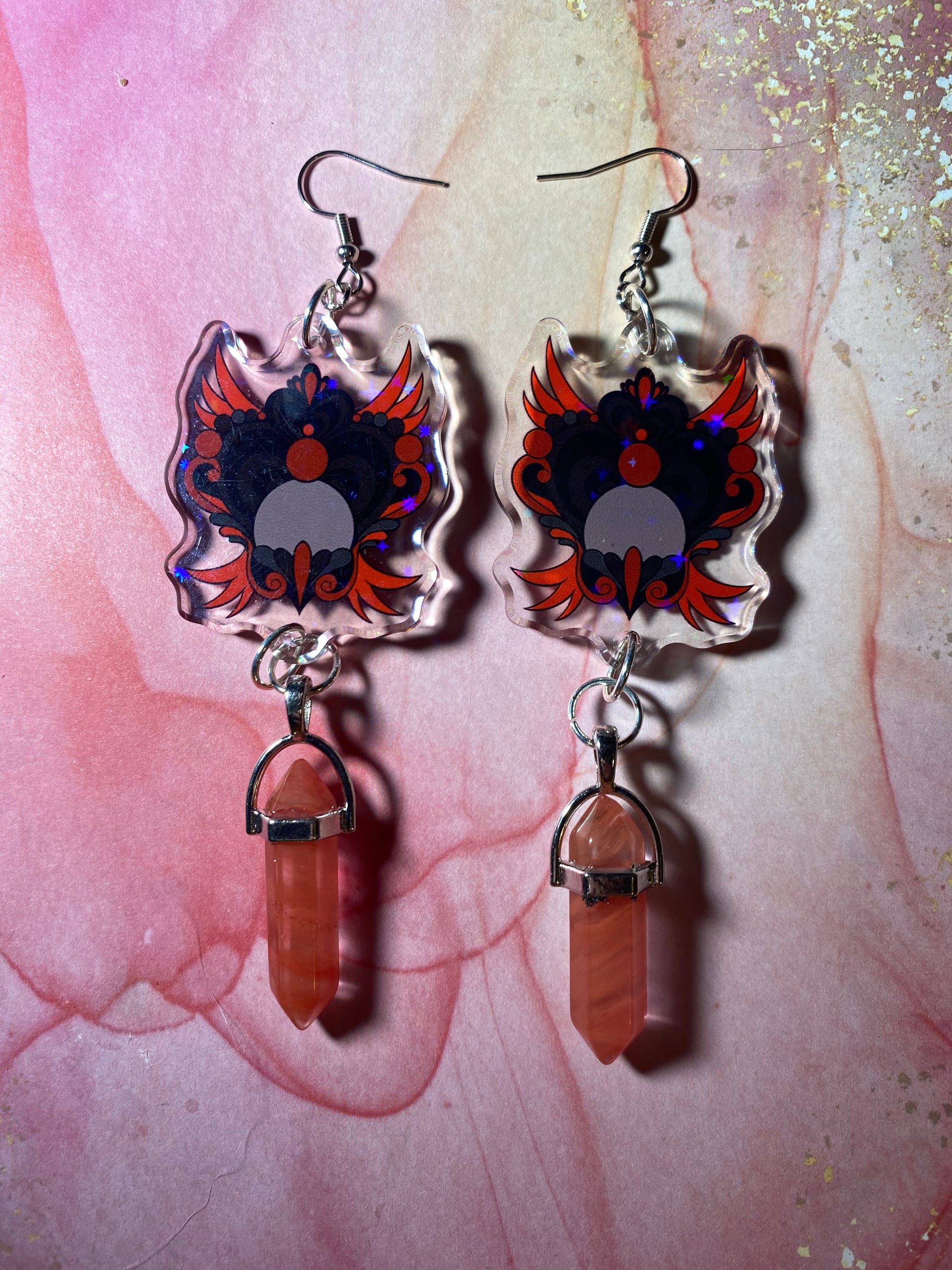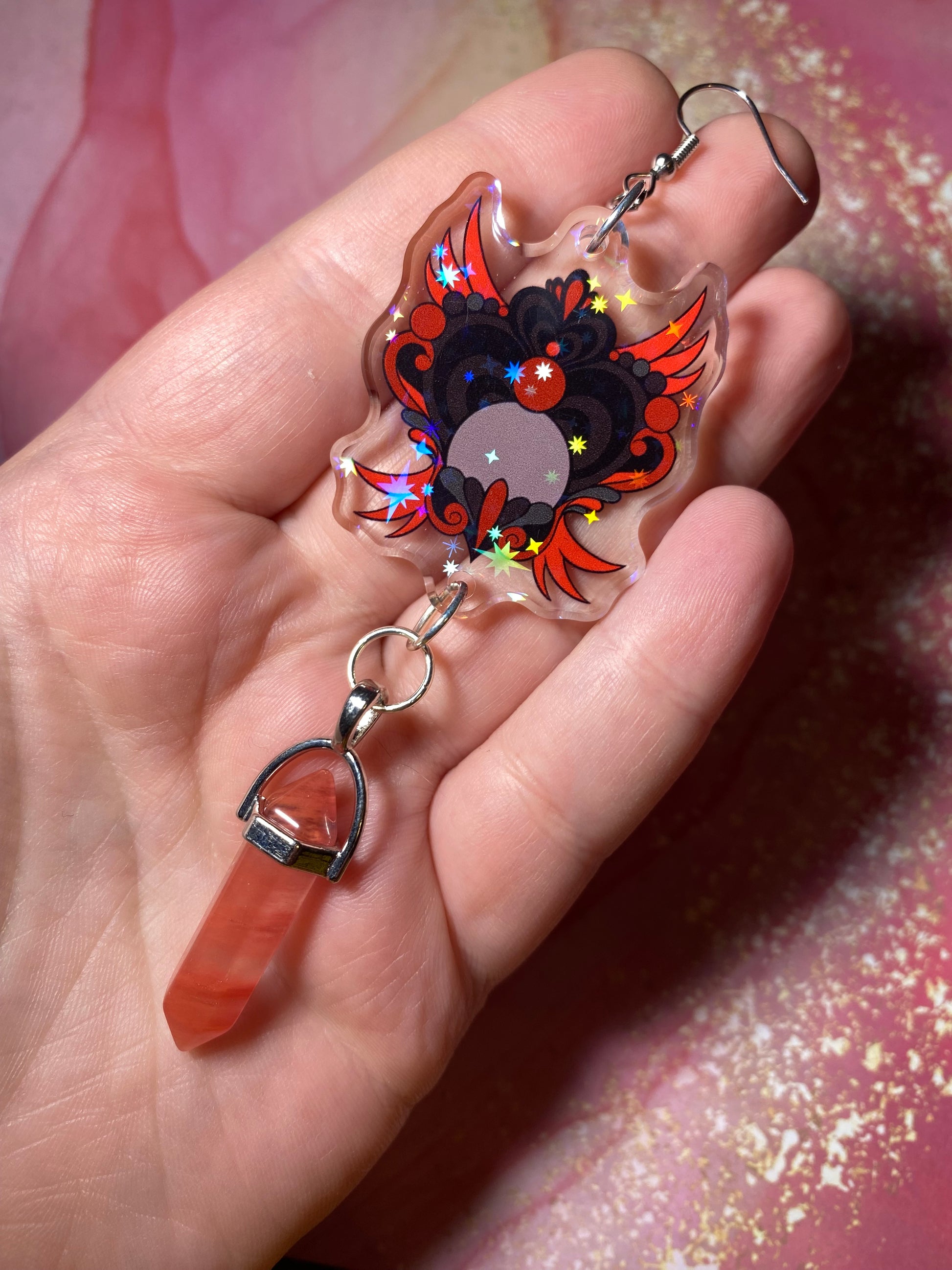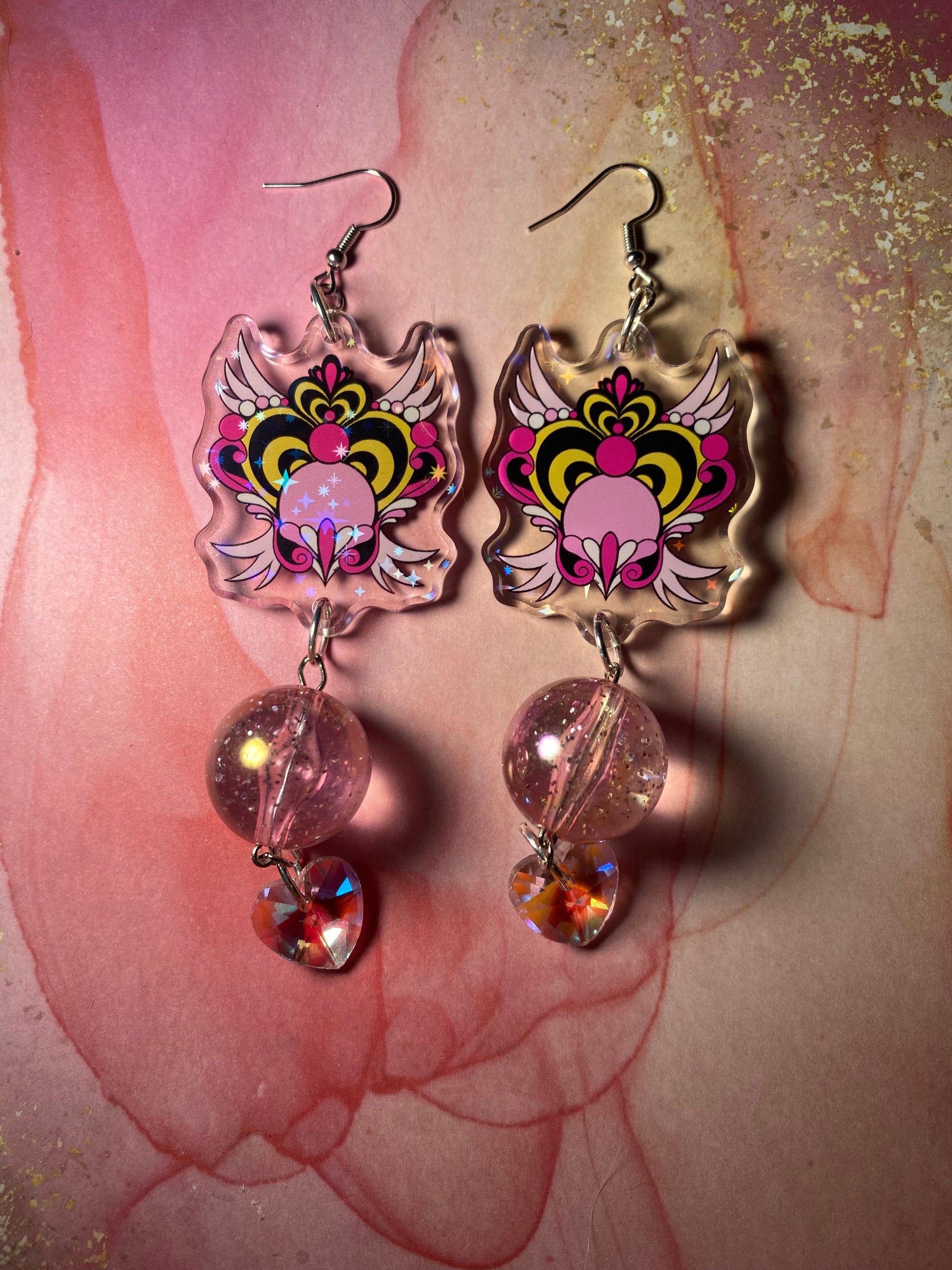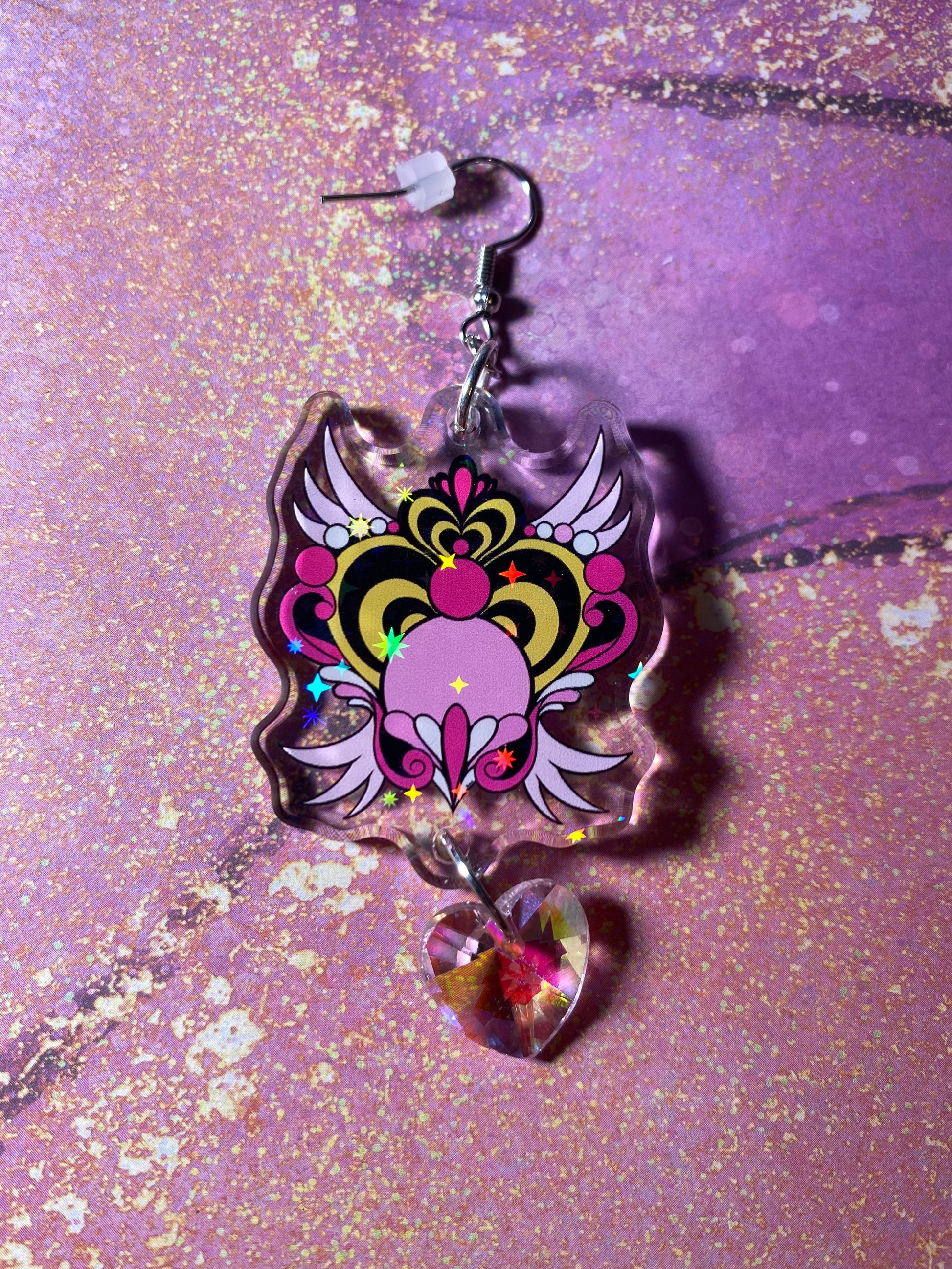 Earrings have nickel free french hooks with a squishy plastic backing. Charms are made from acrylic/epoxy with a holographic starry finish on the front of the charm.